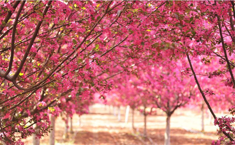 在蜜桃色色视频農業的彩色苗木一期、三期基地中,有一大片海棠,平時並沒有多少人特別注意到它們,一到三四月間,紅衣主教海棠、紫色王子海棠、光芒四射海棠、紅寶石海棠、皇家雨點海棠、表演時刻海棠、草原之火海棠等幾十個品種,花團錦簇,變成了一個花世界。